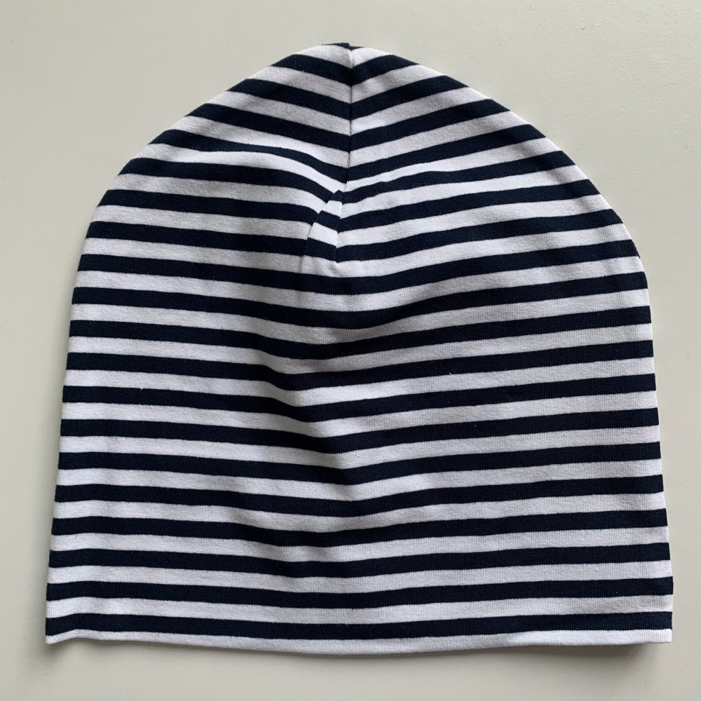 Baggy hue med blå/hvide striber - str. 2-4 år